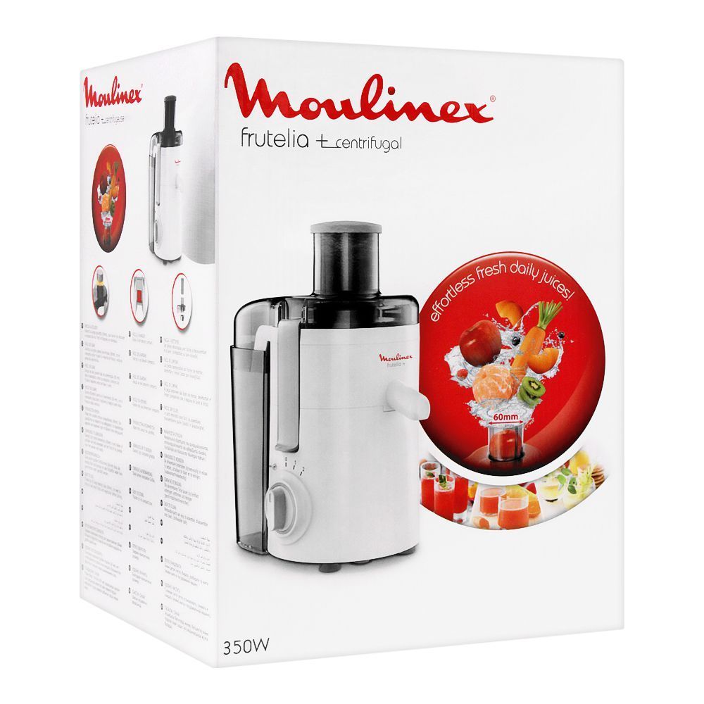 The MOULINEX Frutelia Plus JU370127 electric juicer is the perfect solution for fresh juice lovers. With a powerful 350W motor and a thoughtful design, it makes preparing fruit and vegetable juices quick and easy.