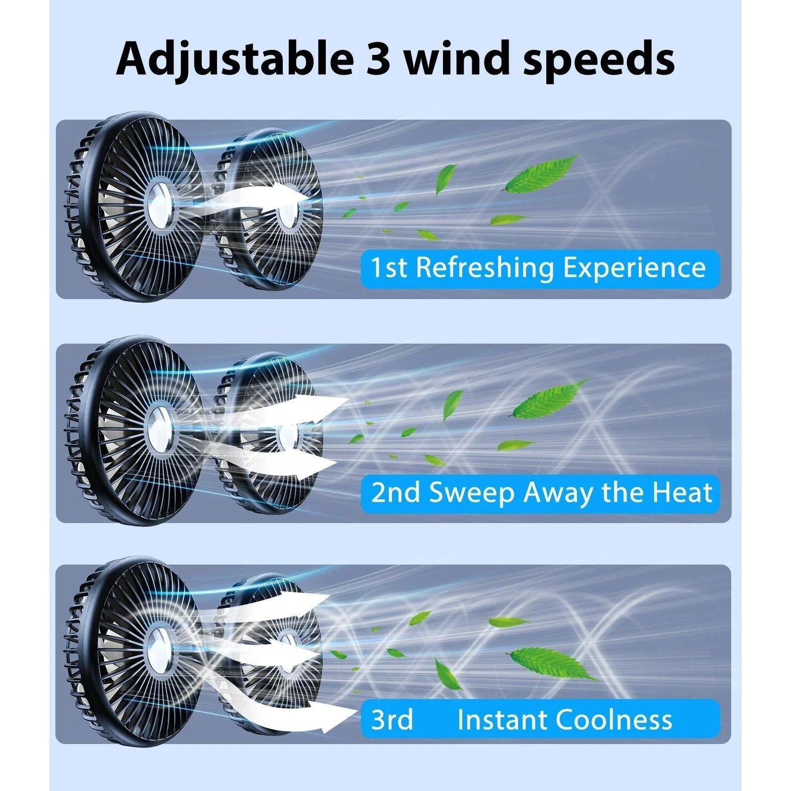 ברוכים הבאים לעוזר המושלם שלכם בימים חמים — מאוורר עם 3 מהירויות למושב האחורי של הרכב. מאוורר ייחודי זה, עם שני ראשים, ייצור אווירה נוחה ברכב שלכם ויבטיח קירור מעולה לכל הנוסעים.