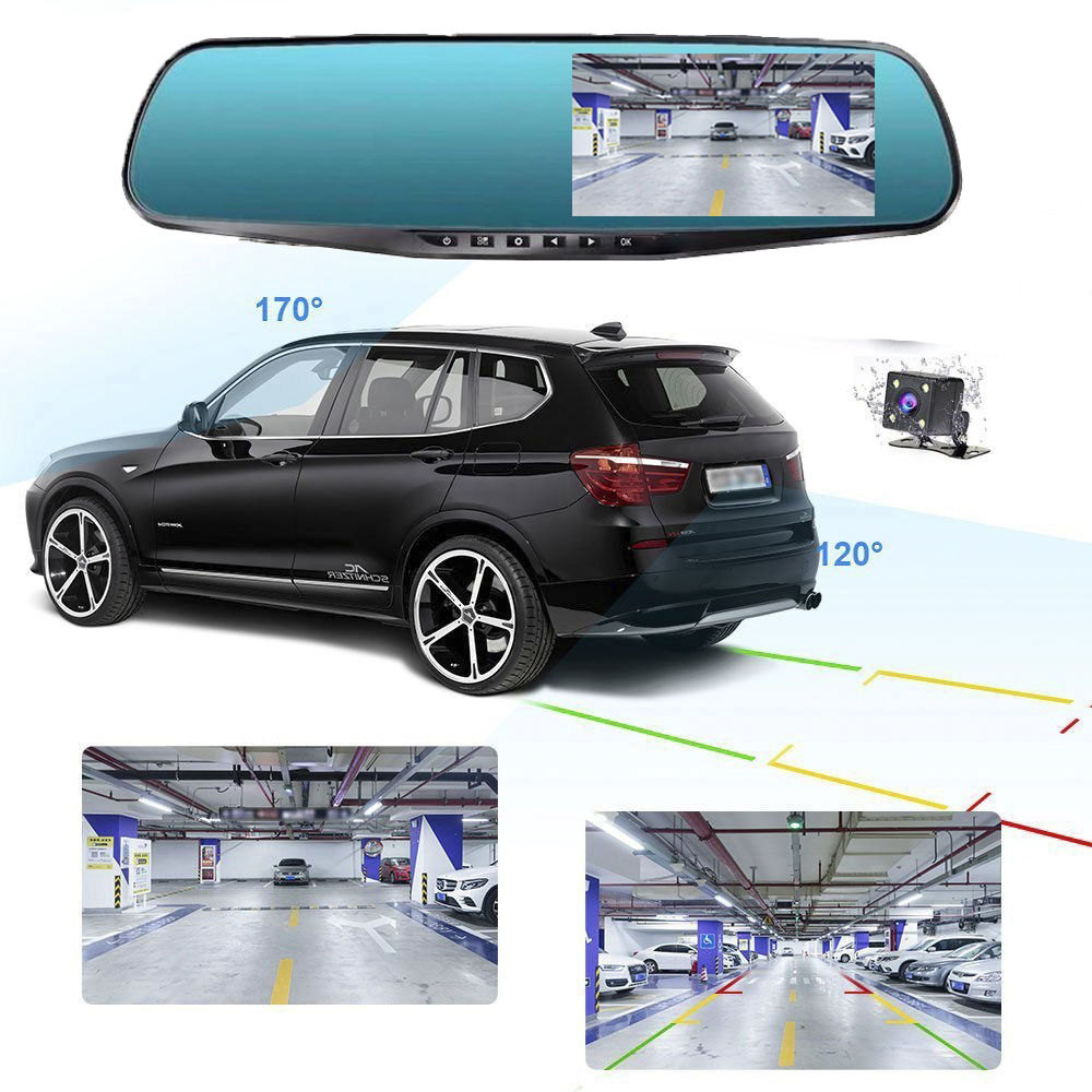 מכשיר הקלטה וידאו - מצלמת רכב משולבת במראה 1080 HD עם שתי מצלמות 4.3