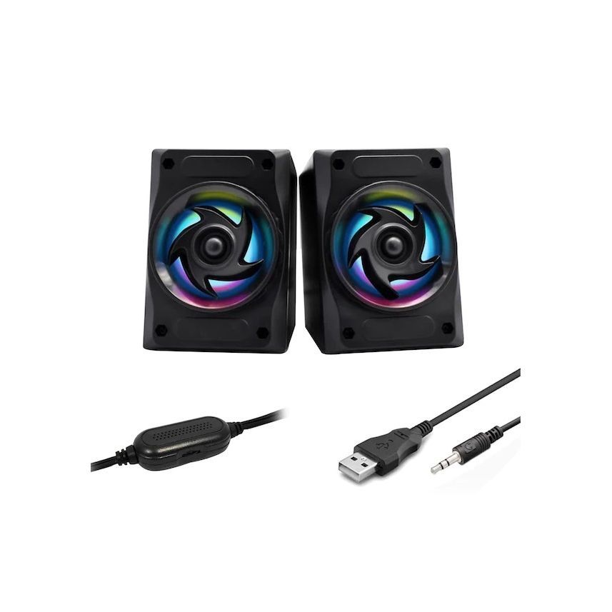 רמקולי גיימינג Jituo 2612 RGB: עיצוב קומפקטי, צליל עוצמתי (2 x 3 וואט) ותאורת RGB מרהיבה. חיבור USB לנוחות שימוש ולצליל נקי