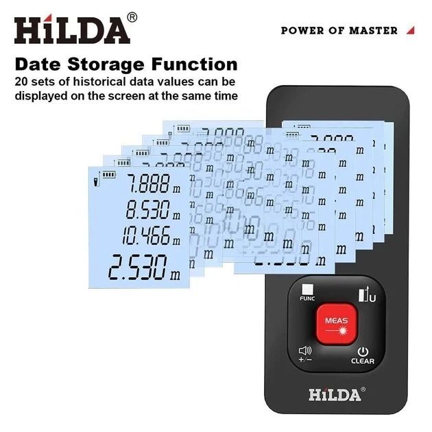 מד מדידה לייזרי HILDA LDM-E50: מדידות מדויקות עד 50 מטרים, נוח לשימוש