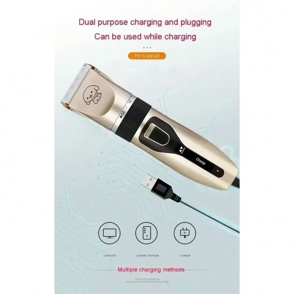 מכונת גזירת פרווה מקצועית לכלבים וחתולים עם ערכת טיפוח. המכשיר האלחוטי מבטיח גזירה מדויקת וטיפול נוח בחיית המחמד שלכם