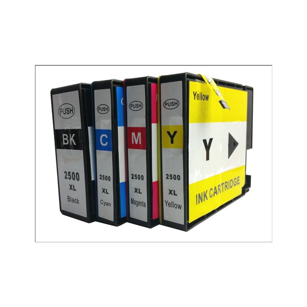 סט של 4 קרטוני דיו תואמים CMYK Canon C-2500XL מספק הדפסות ברורות וצבעוניות. אידיאלי עבור מדפסות Canon, הוא גם יעיל וגם חסכוני