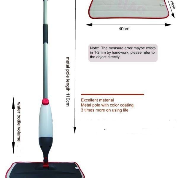 - ספריי נוח: מים או תערובת חומר ניקוי ממולאים בקלות במיכל הפלסטיק שבתחתית המגב. התזת חומר הניקוי מתבצעת בלחיצת כפתור פשוטה, ומאפשרת לנקות את השטח במהירות ויעילות.