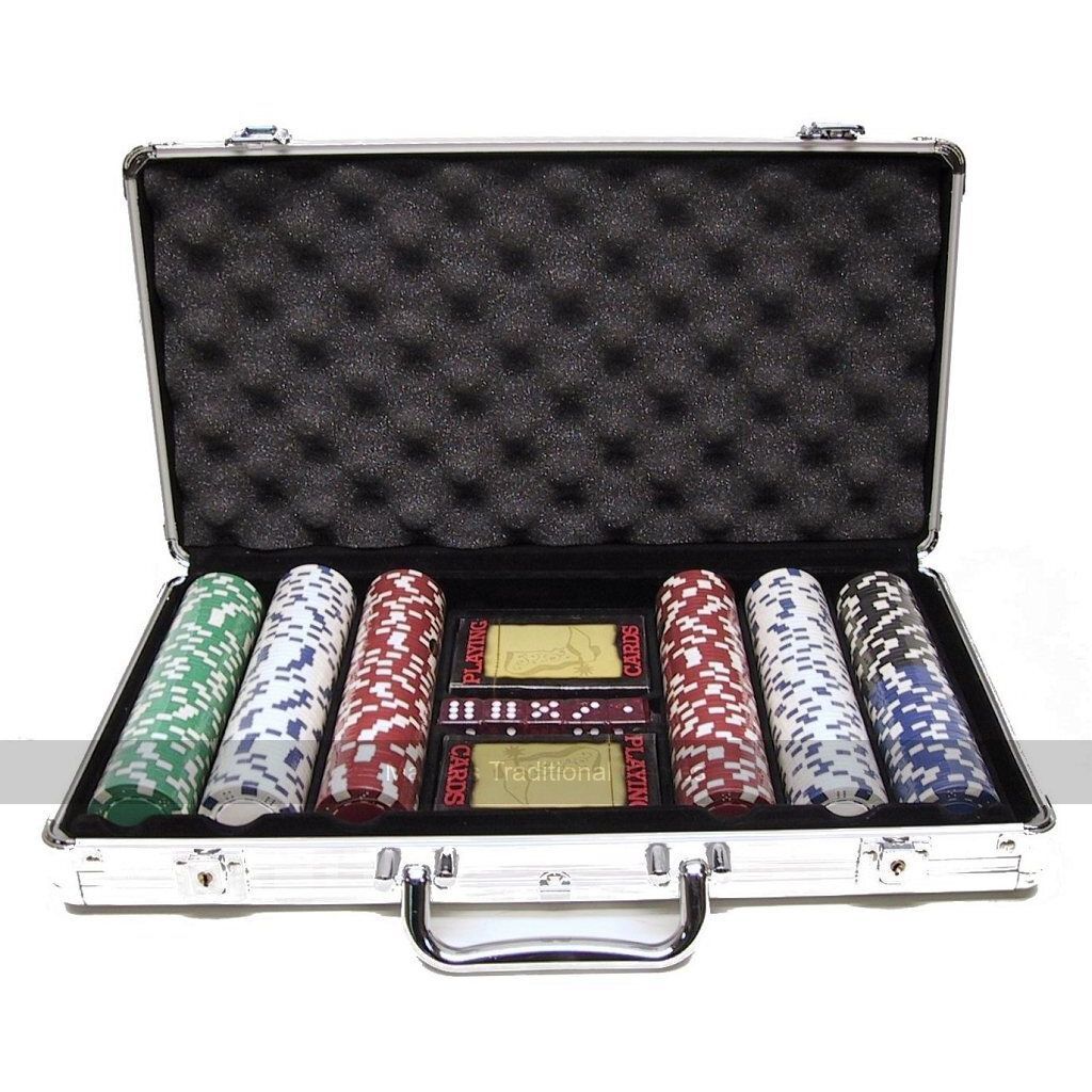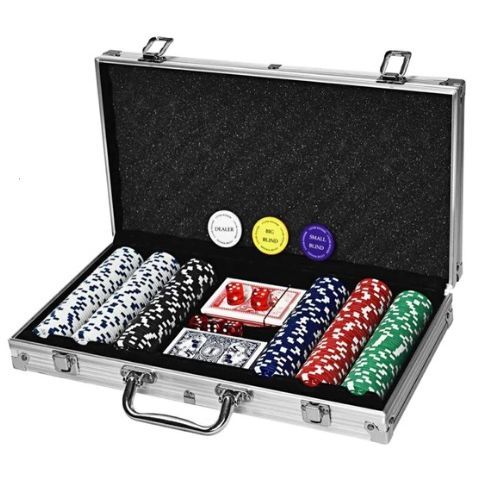 הסט כולל גם 2 חפיסות קלפי משחק, כפתור דילר, 2 כפתורי הימור ו-5 קוביות פוקר, הכל ממוקם באריזת אחסון יפהפה מאלומיניום.