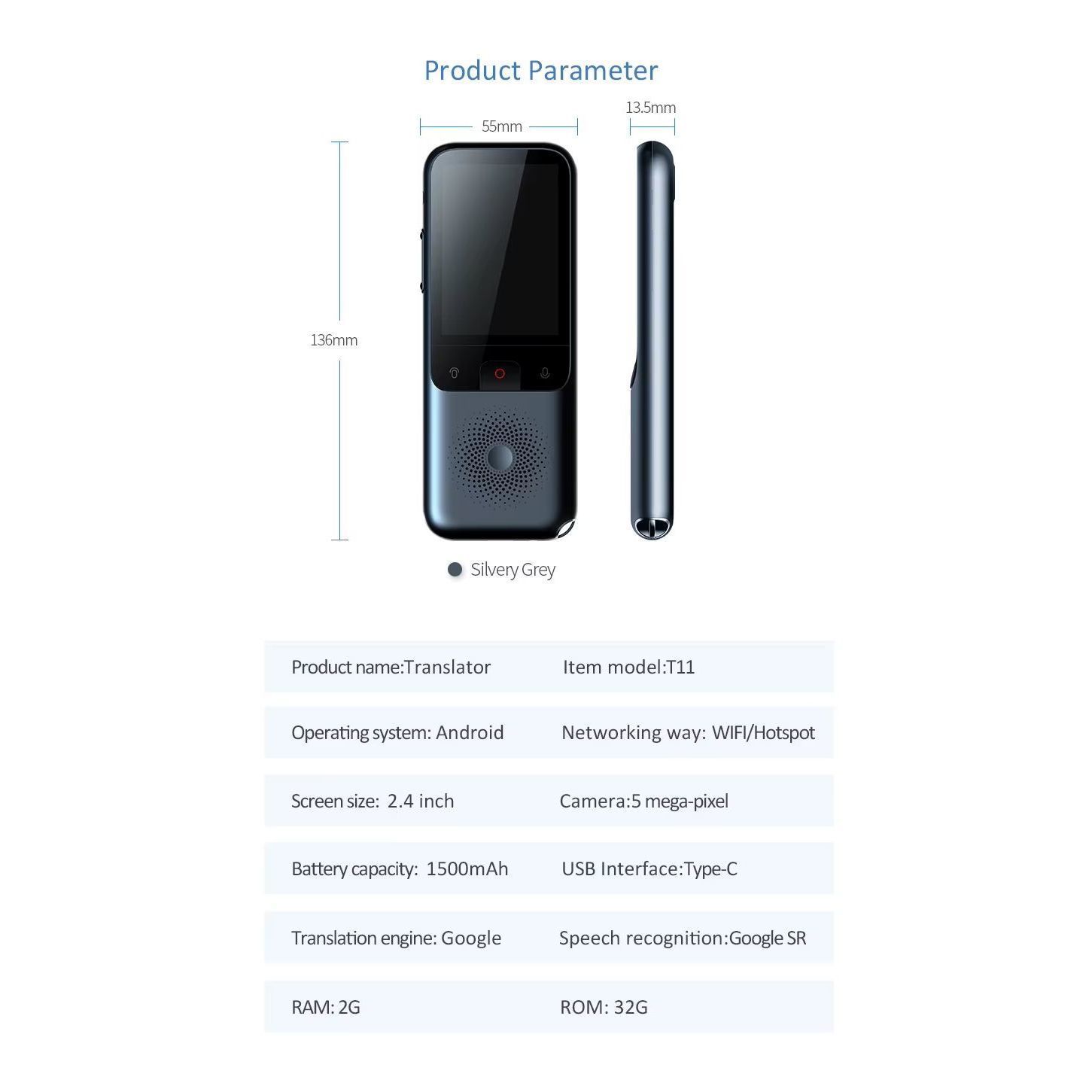 המתרגם הקולי T11 מצויד בטכנולוגיה מתקדמת של אינטליגנציה מלאכותית (AI) לתרגום מדויק של מילים ומשפטים. הוא מאפשר לתרגם טקסט מתמונות באמצעות מצלמה מובנית באיכות 5 מגה פיקסל.