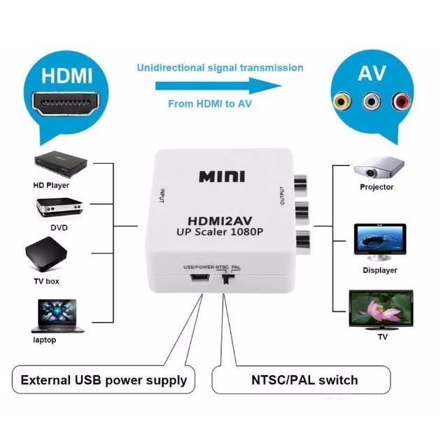 Не позволяйте устаревшему оборудованию ограничивать ваши возможности! Адаптер HDMI2AV – это надежное и простое решение для подключения современных устройств к классическим AV системам. Убедитесь, что у вас есть этот конвертер, чтобы наслаждаться любимыми фильмами и играми в удобном формате.